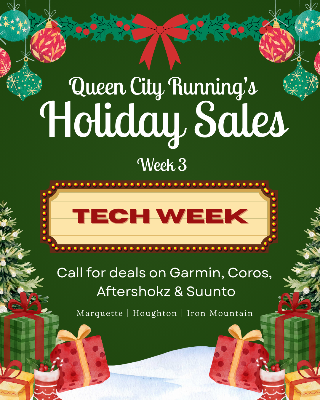 This week we are focusing on our technology, with big deals from Garmin, Coros, and Shokz. We have limited in store availability, but swing by or call and we can answer any questions and let you know what deals we can get for you!