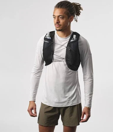 Prioritizing comfort, the Salomon Active Skin 4 Set hydration vest is soft, snug and breathable, and it has pockets in just the right places so you have easy access to water and food along the way.
